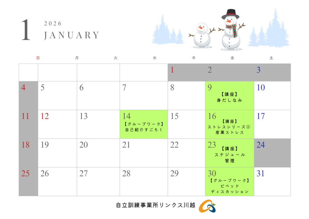 1月の講座・グループワークスケジュール
