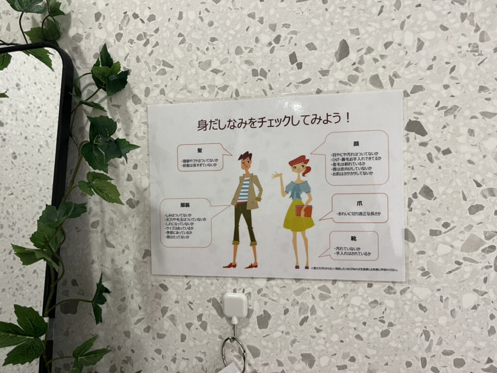 各項目の詳しいチェックポイントも鏡のそばに貼ってあるので参考にしてくださいね!