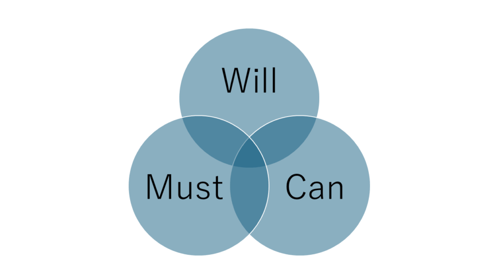 会社が求めること(Must)と自分がやりたいこと(Will)が合っていないと「自分は何のために働いているんだろう」と感じ、モチベーションの低下に繋がります。